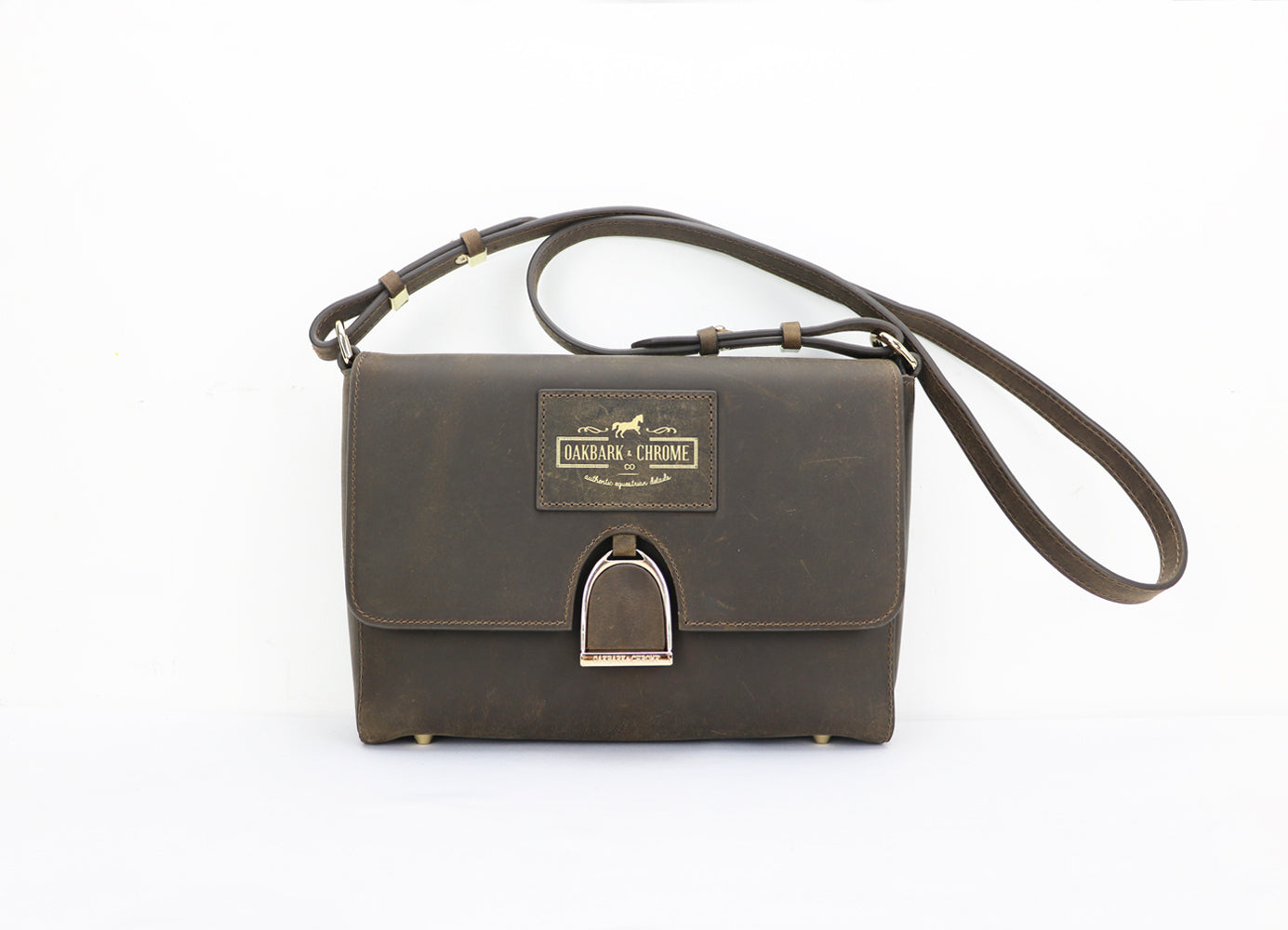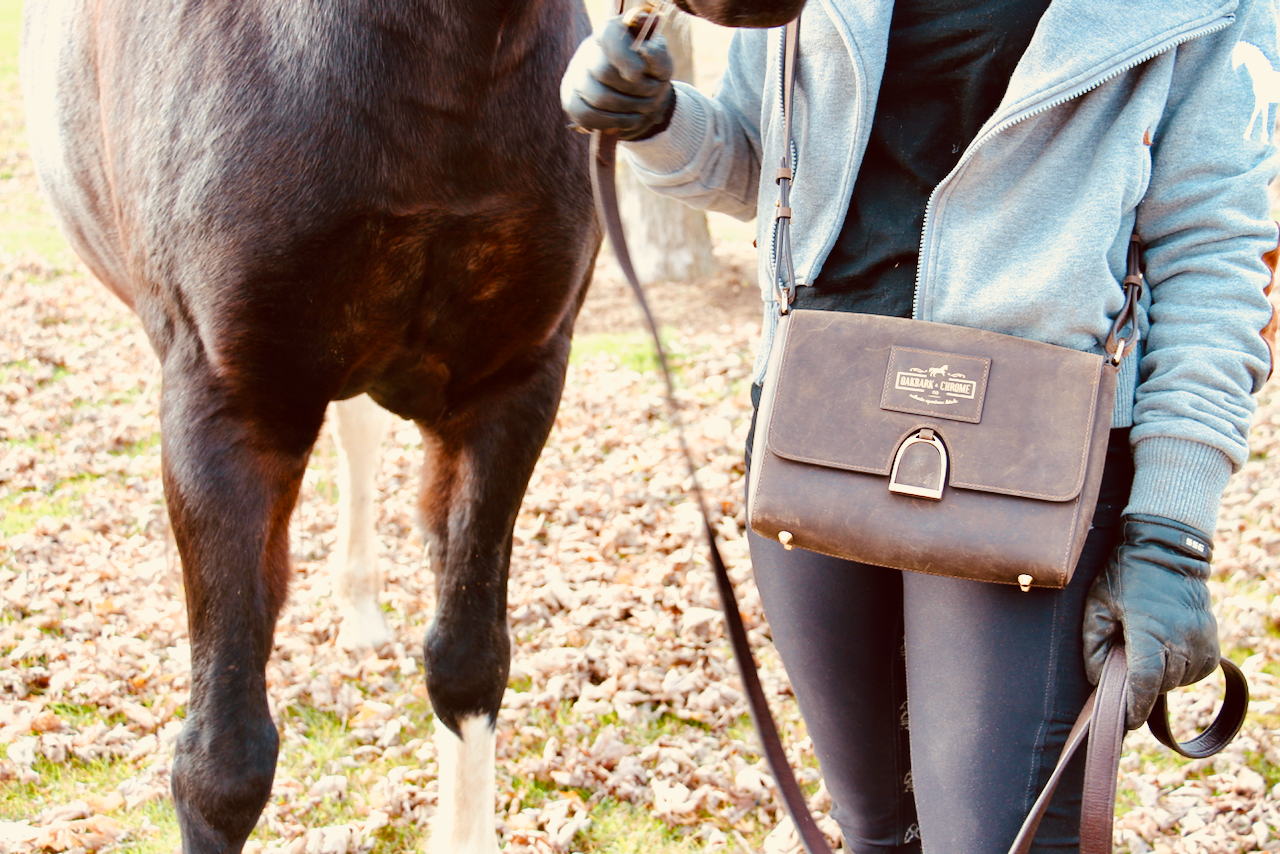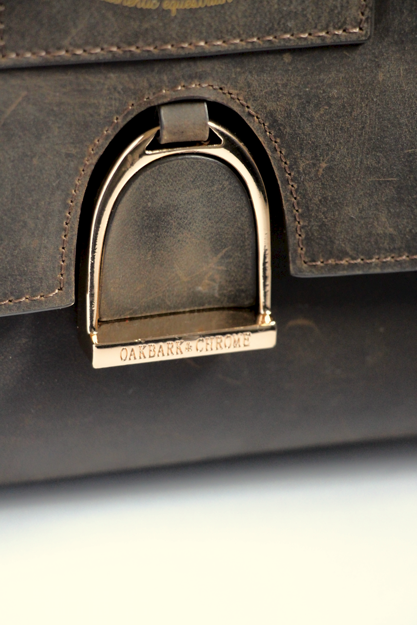 Oakbark & Chrome's shoulder bags are loved by both equestrians and non-equestrians alike with their thoughtful features: tactile top grain leather (looks better the more it is worn!), the front stirrup clasp (ensuring nothing falls out), the stabilizing feet (keep the bottom clean), and it’s classic herringbone lining (easy to clean but masks dirt).